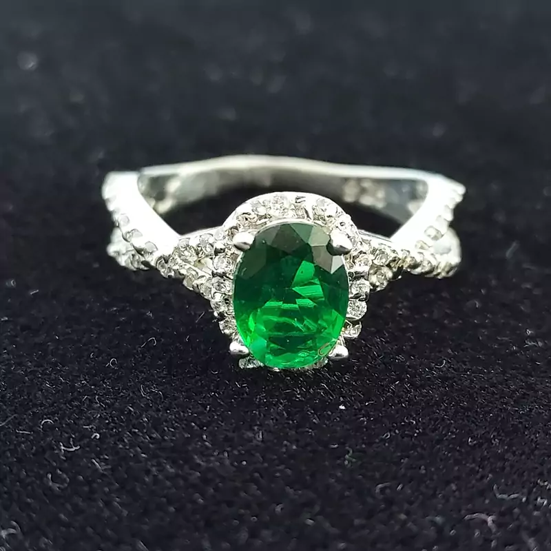 انگشتر نقره زنانه تک نگین سبز عیار 925 آقابزرگ