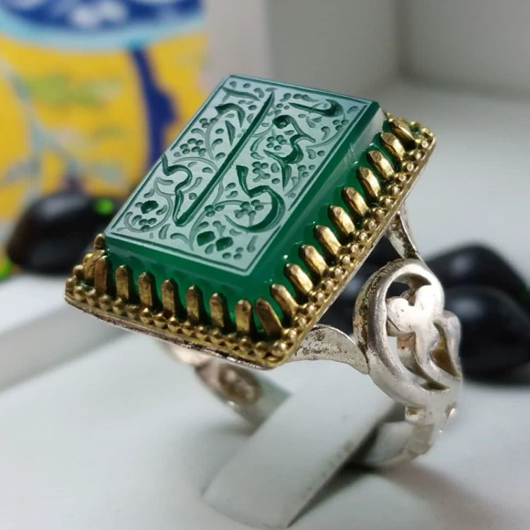 انگشتر نقره مردانه عقیق سبز با حکاکی(یا مهدی ادرکنی)