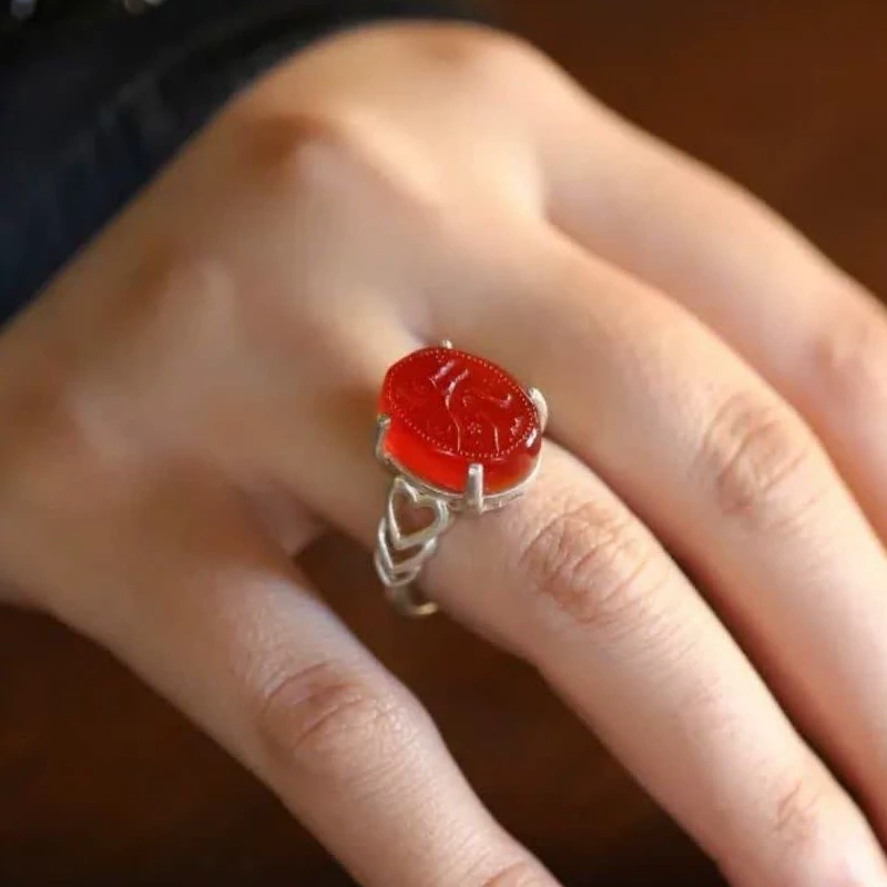 انگشتر نقره زنانه عقیق سرخ منقش به یا زهرا ---