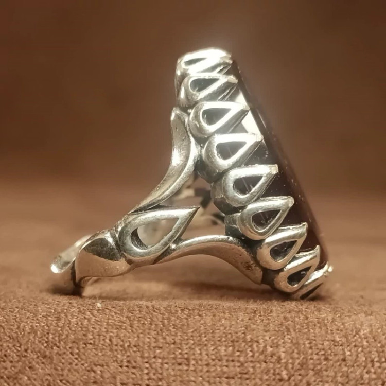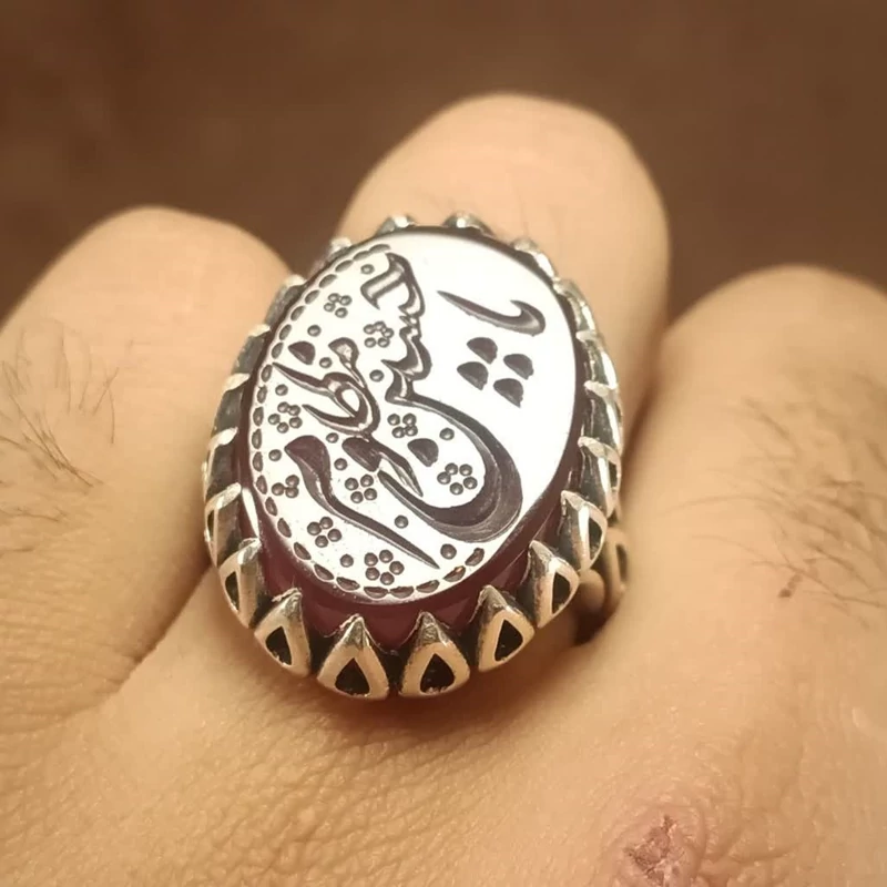 انگشتر نقره عقیق سرخ خراسانی با حکاکی یا حسین مظلوم رکاب اشکی