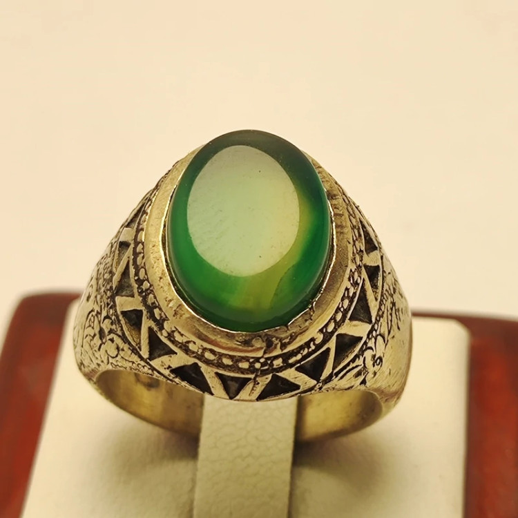 انگشتر مردانه عقیق سبز رکاب نقره روس شیک پوش