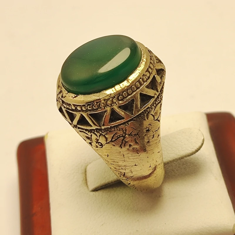 انگشتر مردانه عقیق سبز رکاب نقره روس شیک پوش