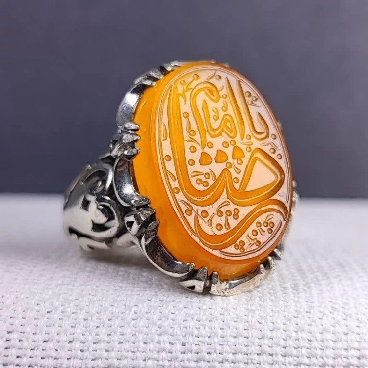 انگشتر نقره مردانه عقیق پرتقالی منقش به یا امام رضا