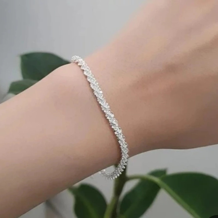 طراحی دستبند جوری هست که توی حالات مختلف نور برق میزنه انگار نگین داره ولی بدون نگین هست