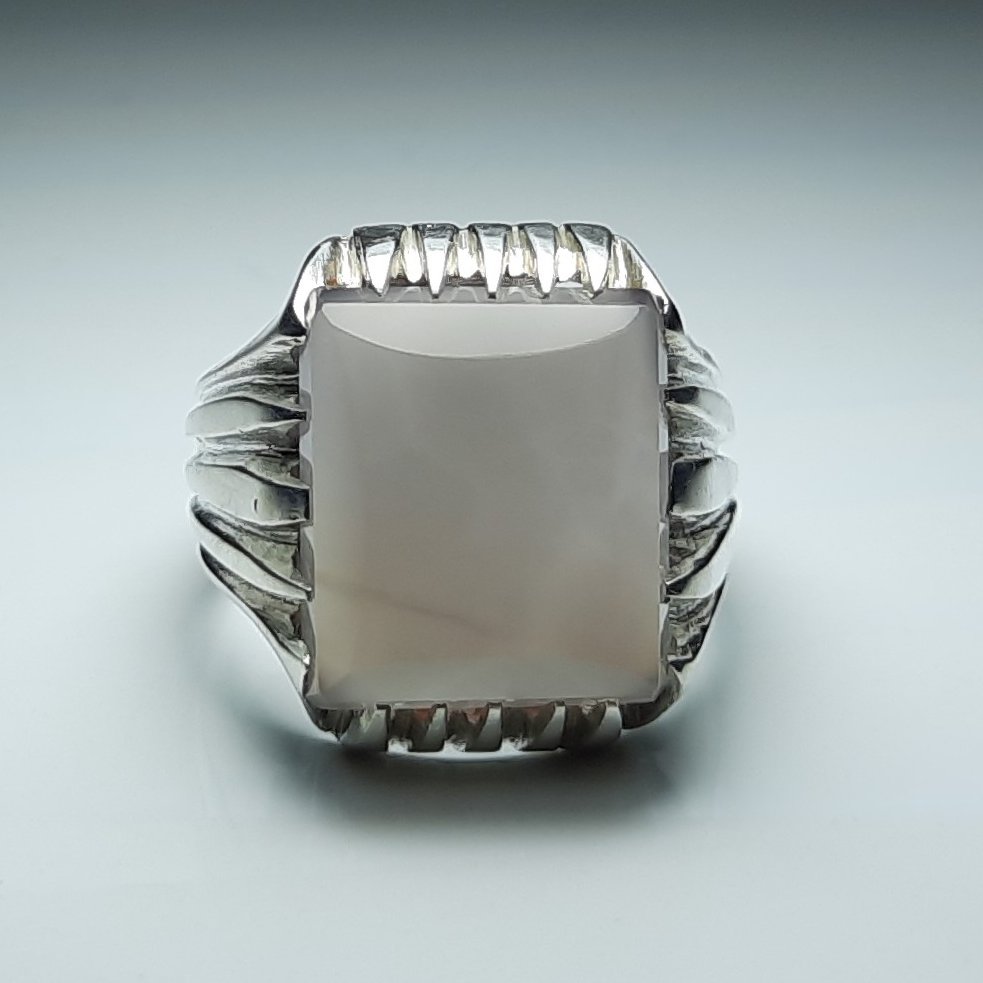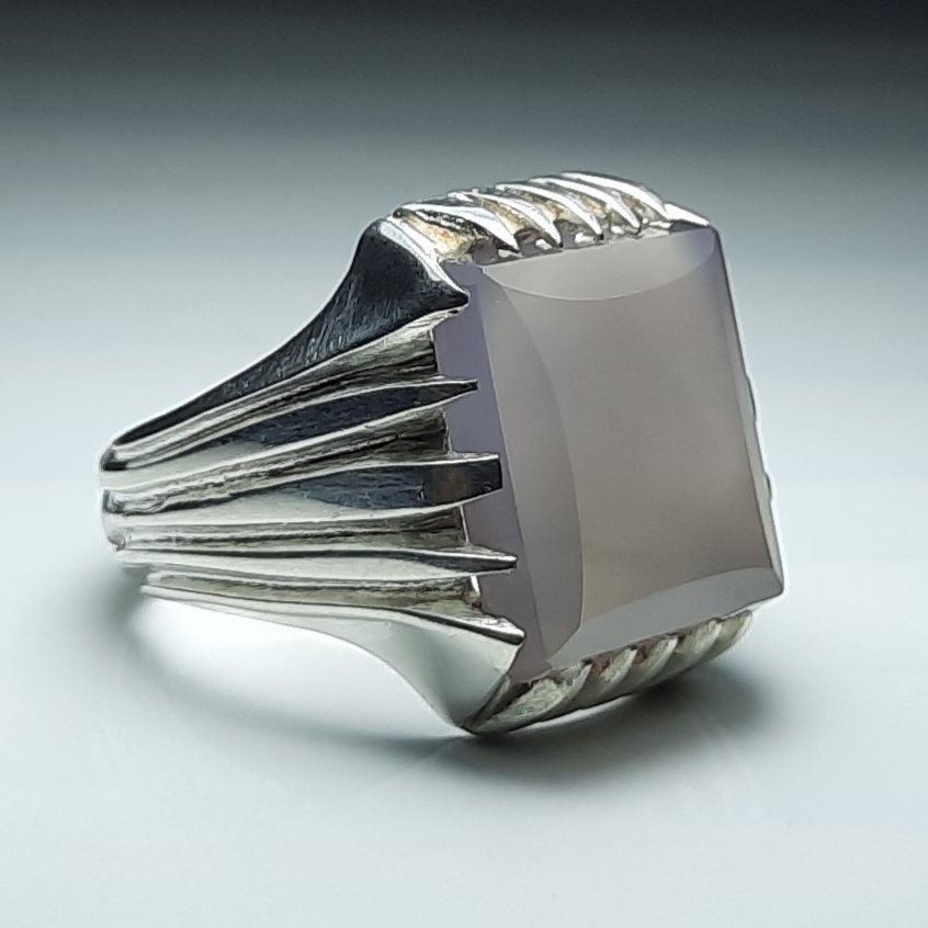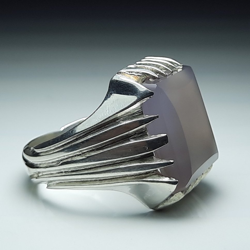 انگشتر نقره نیمه دستساز عقیق کبود تراش جواهری اصل یمن