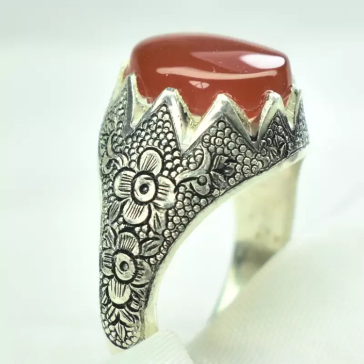 انگشتر نقره مردانه سیاه قلم دست ساز نگین عقیق یمنی اصل