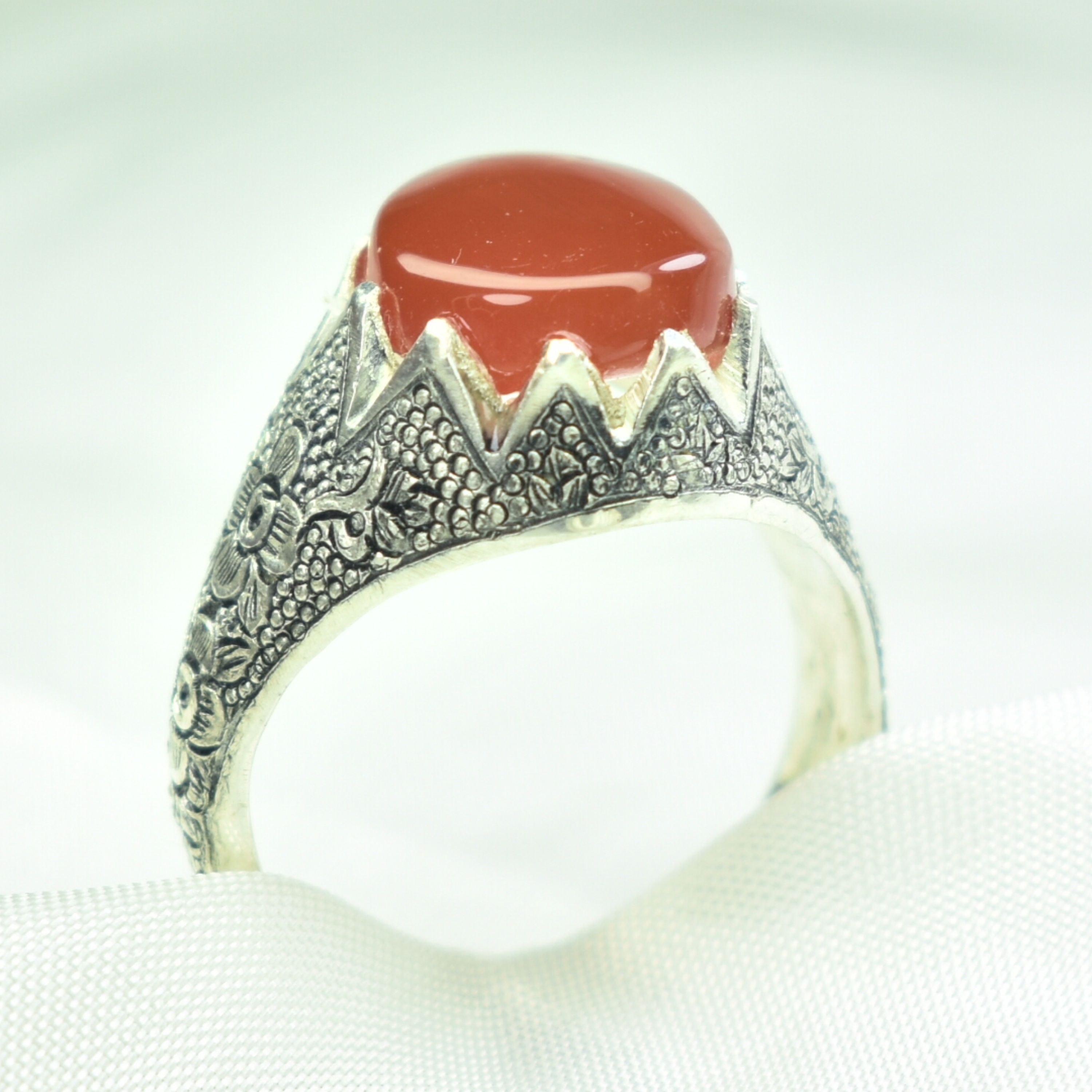 انگشتر نقره مردانه سیاه قلم دست ساز نگین عقیق یمنی اصل