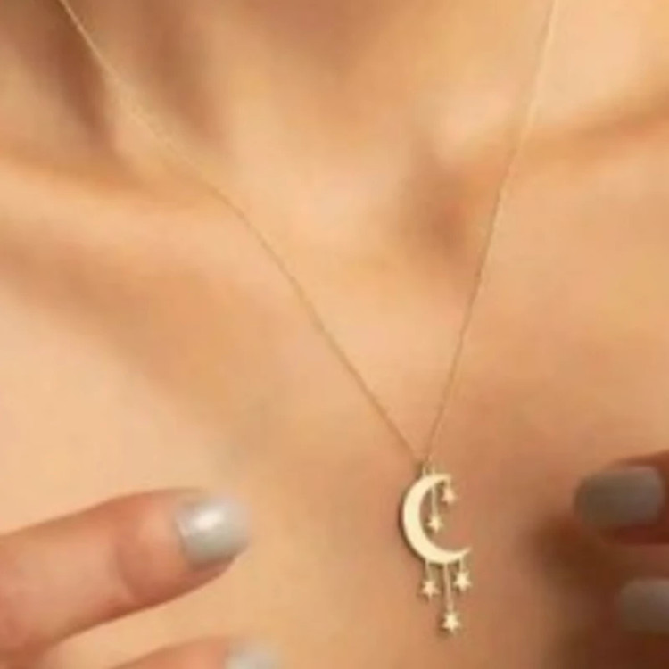 گردنبند زنانه نقره 925 عیار وارداتی طرح ماه وستاره آویزی