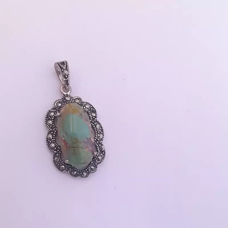 آویز گردنبند نقره زنانه 925 عیار فیروزه سبز نیشابور خاص