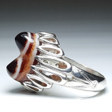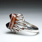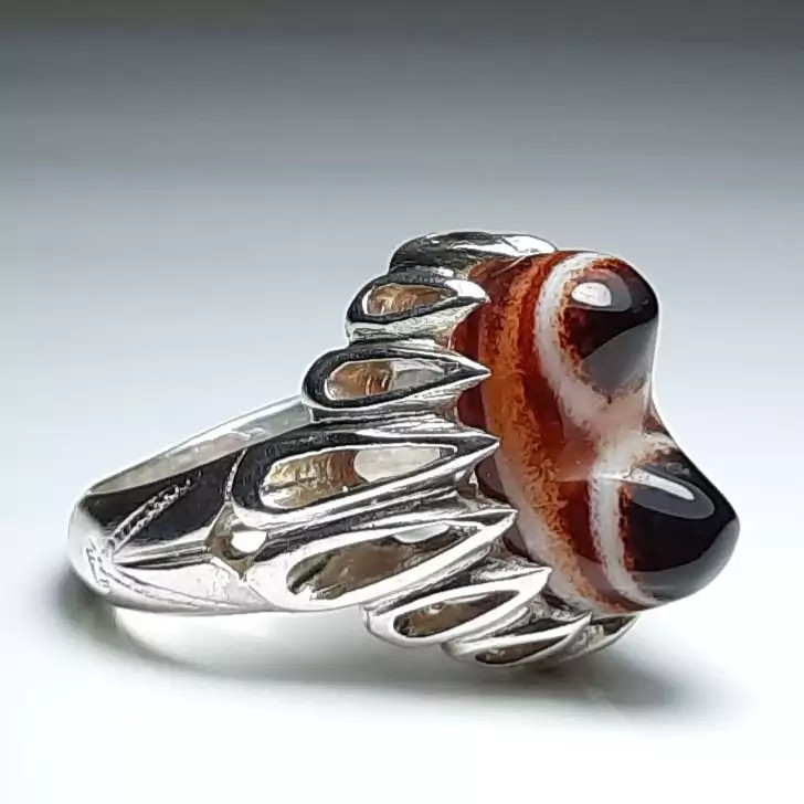 مشاهده محصولات مرتبط💎 انگشتر نقره سفارشی ساز باباقوری دوکوهان ( عقیق سه پوست با تراش دوکوهانه ) خوشرنگ اصل معدنی ، طوقهای منظم و موازی و تنوع رنگی خاص با تراش دقیق و منظم و رکاب نیمه دستساز عیار استاندارد 925 طرح اشکی هنر دست استاد امیر محمدی با مهر عیار و سازنده " امیر " حک شده روی رکاب