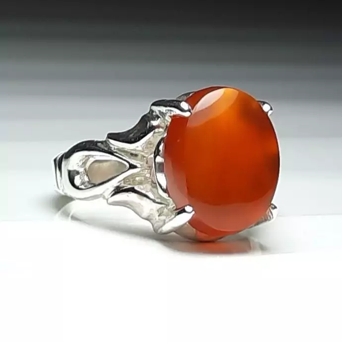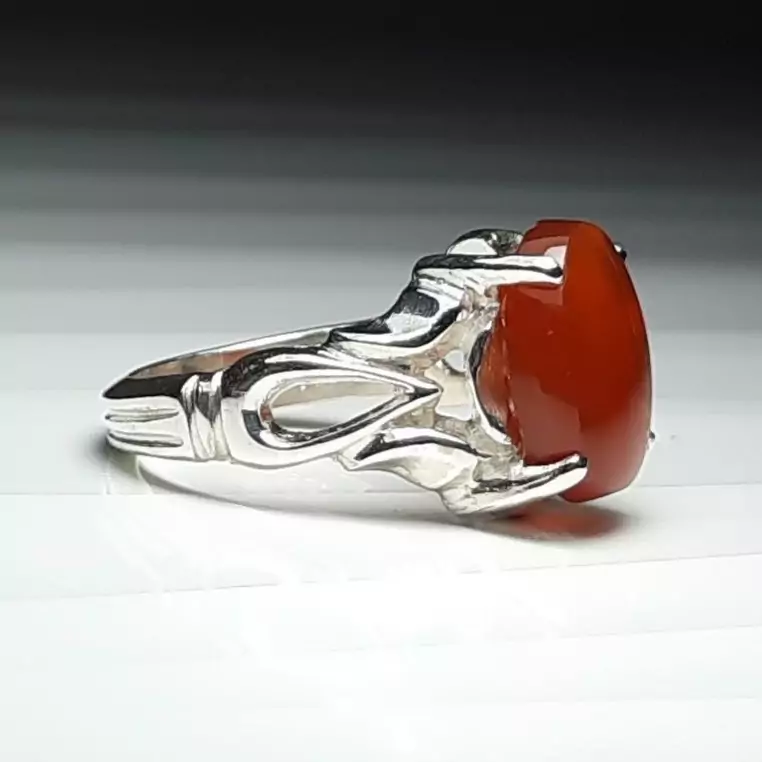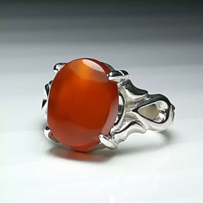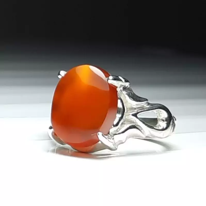 انگشتر نقره عیار 925 عقیق پرتقالی یمن رکاب چهارچنگ
