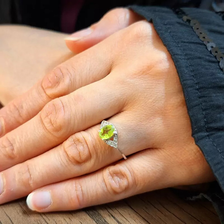 انگشتر نقره زنانه نگین جواهری زبرجد