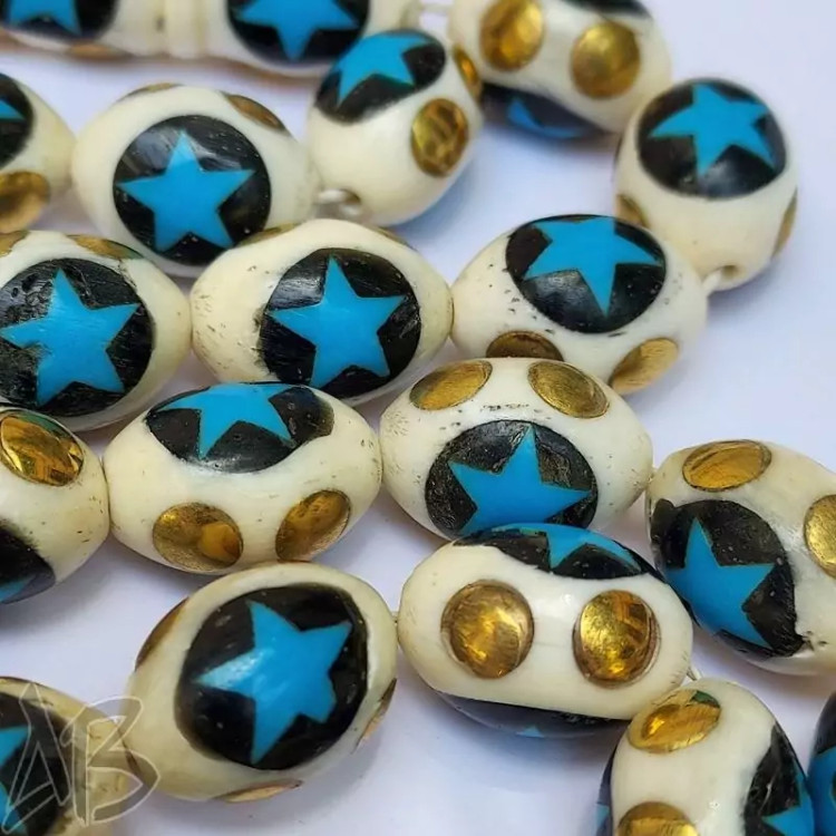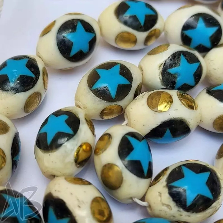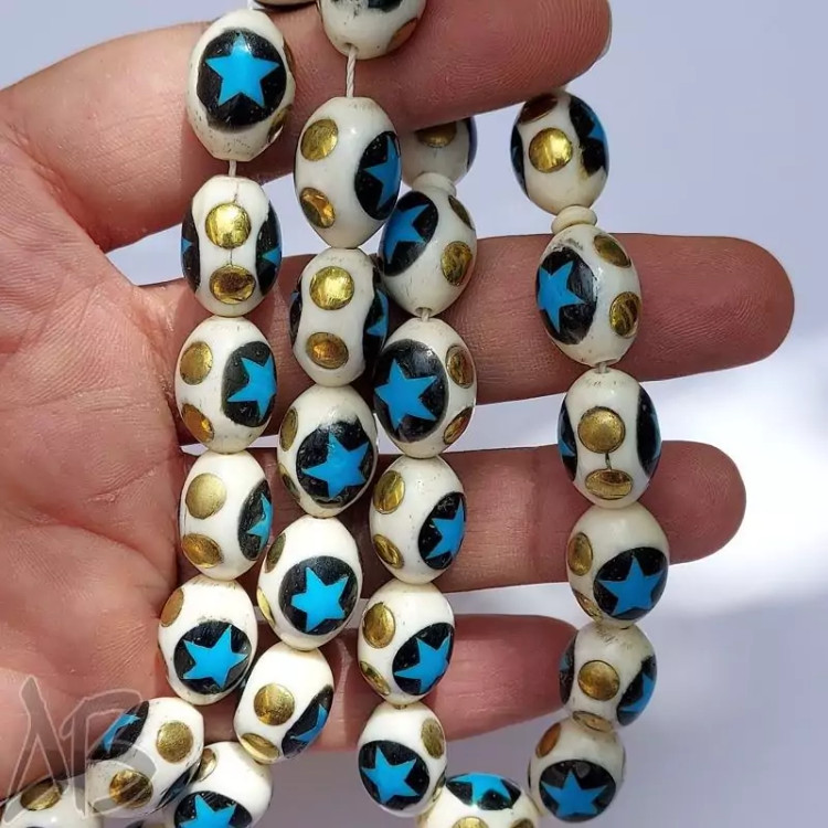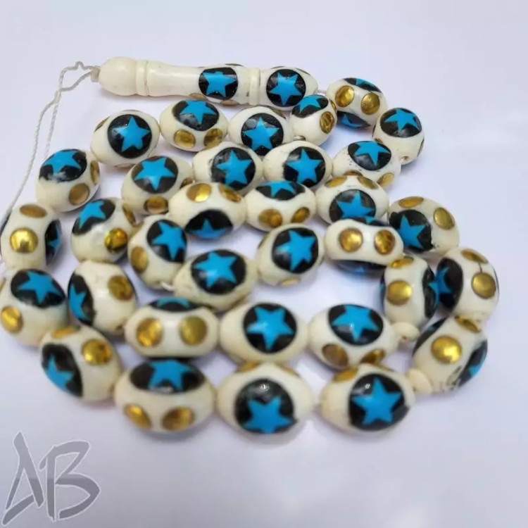 تسبیح استخوان مرصع کاری شده 33 دانه بیضی بسیار زیبا کد 877 آقابزرگ