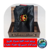 پرچم تحت القبه حرم امام حسین متبرک به ضریح (باسنداصالت به همراه فاکتور از العتبه الحسینی)محصول جدیدجمکران خورشیدآل یاسین