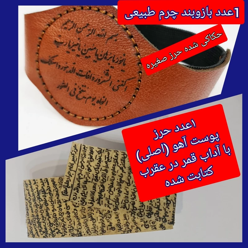2️⃣_بازوبند چرم (حکاکی حرزصغیره روی آن حک شده بارعایت بدون دکمه فلزی ارسال میشود)