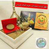 مهر نماز تربت سرداب حرم امام حسین با مخلوط آب سرداب حرم مطهر حضرت عباس همراه سنداصالت محصول جدید جمکران خورشیدآل یاسین