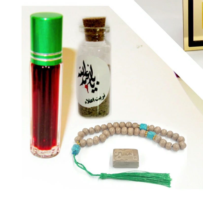 بسته فرهنگی سوغات کربلا 7 قطعه سنگ حرم امام حسین وقاب فرش حرم حضرت عباس وتسبیح عطر و آب سرداب حرم حضرت عباس