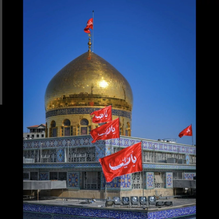 درضمن پایین پرچم اسم عتبه حرم ثبت شده