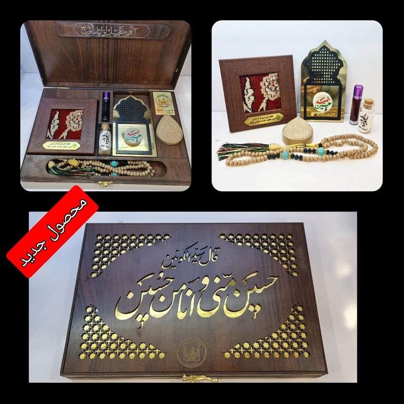 بسته فرهنگی سوغات کربلا 7 قطعه سنگ حرم امام حسین قاب فرش حرم حضرت عباس تسبیح عطر وآب سرداب حرم حضرت عباس