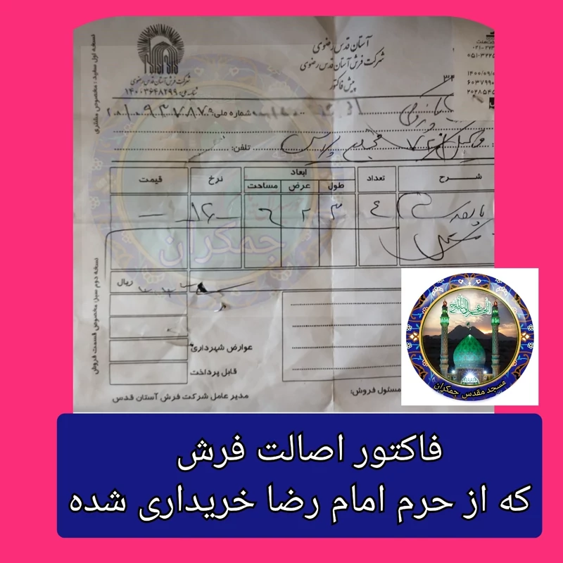 فاکتور اصالت محصول که خریداری شده از عتبه حرم صفحات بعدی تصویرش موجود است میتوانیدمشاهده کنید برای اطمینان شما مشتری عزیز