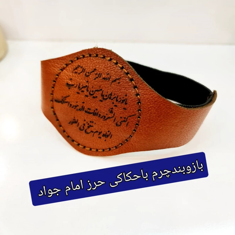 بازوبند حرز امام جواد چرم اصلی به همراه حکاکی اسامی 14 معصوم روی بازوبند حکاکی شده ( دعا اذکار ادعیه