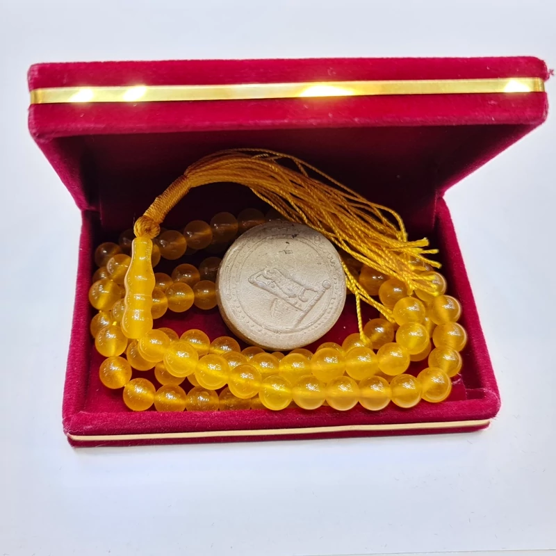 تسبیح عقیق زرد شرف شمس درشت 8 همراه مهرتربت کربلا باجعبه نفیس( ارسال رایگان یک دنیاهدیه های فرهنگی خورشیدآل یاسین