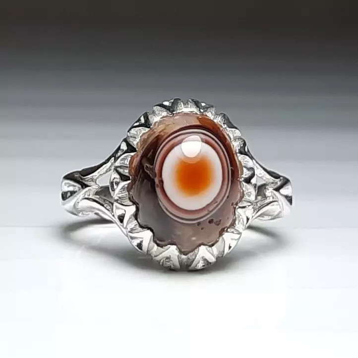 انگشتر نقره عیار استاندارد 925 با سنگ باباقوری میزان و منظم طوقدار و نی نی دار خال سرخ طبیعی هند