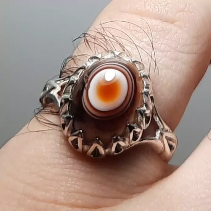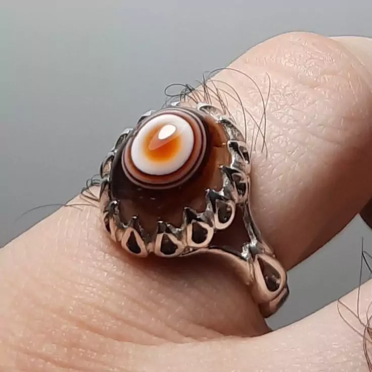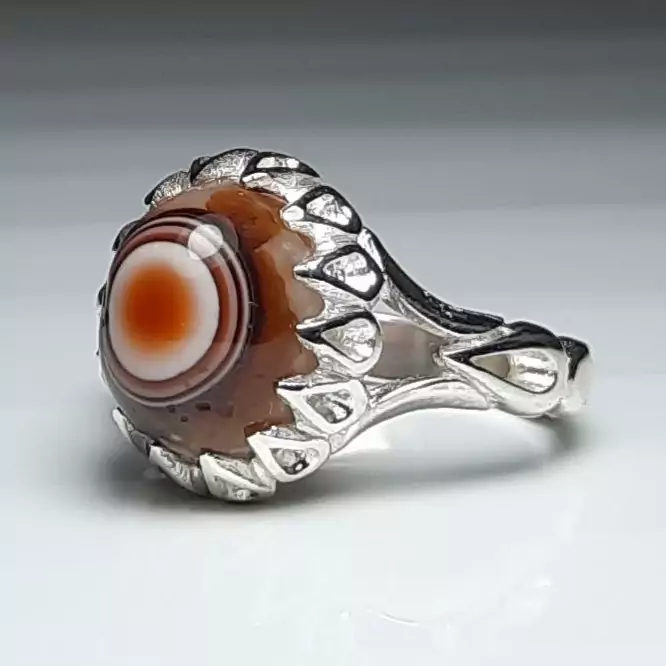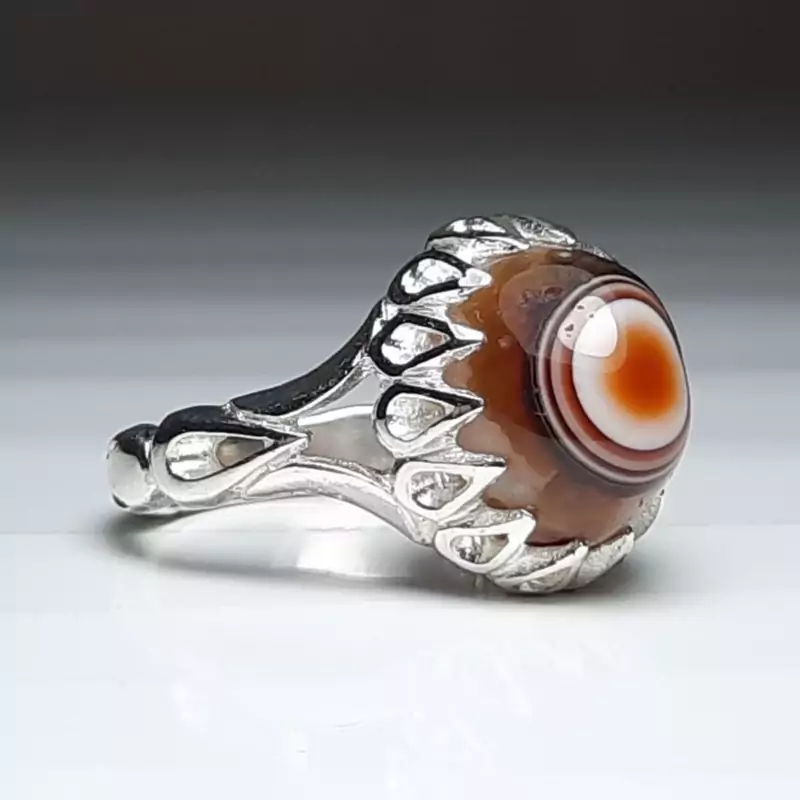 انگشتر نقره عیار استاندارد 925 با سنگ باباقوری میزان و منظم طوقدار و نی نی دار خال سرخ طبیعی هند