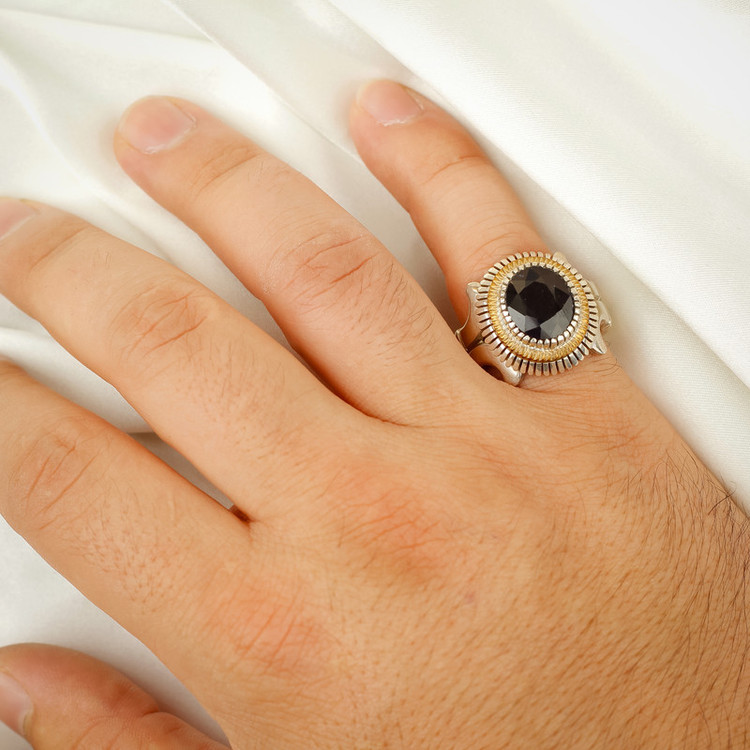 نوع انگشتر نقره مردانه: همراه با سنگ و نگین