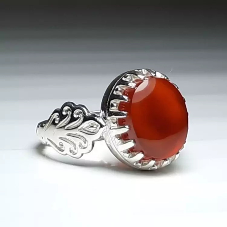 انگشتر نقره 925 عقیق سرخ خوشرنگ طبیعی اصل یمن