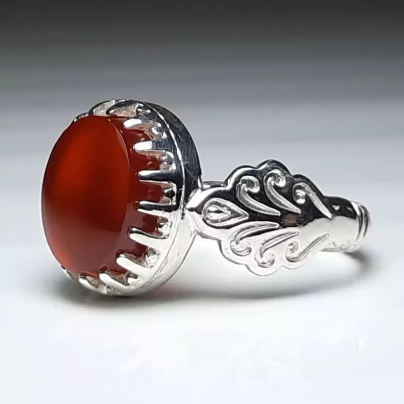 انگشتر نقره 925 عقیق سرخ خوشرنگ طبیعی اصل یمن