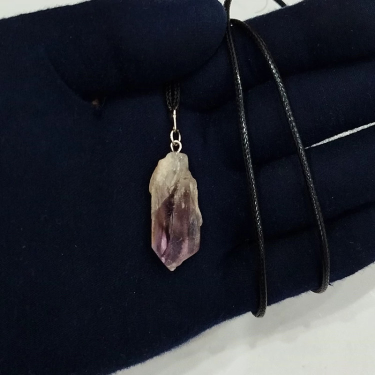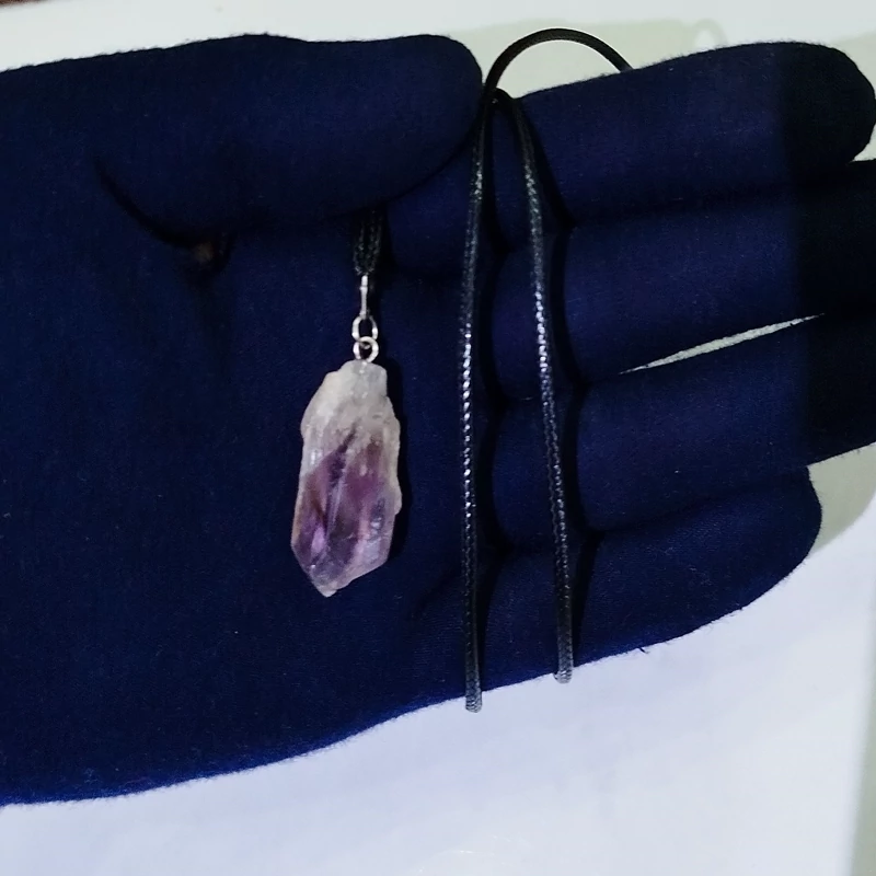 گردنبند آمیتیست برزیلی طبیعی خط دار بهترین کیفیت بلوری چند وجهی،فرکانس عالی ،قیمت مناسب (10گرم)،(a2301)