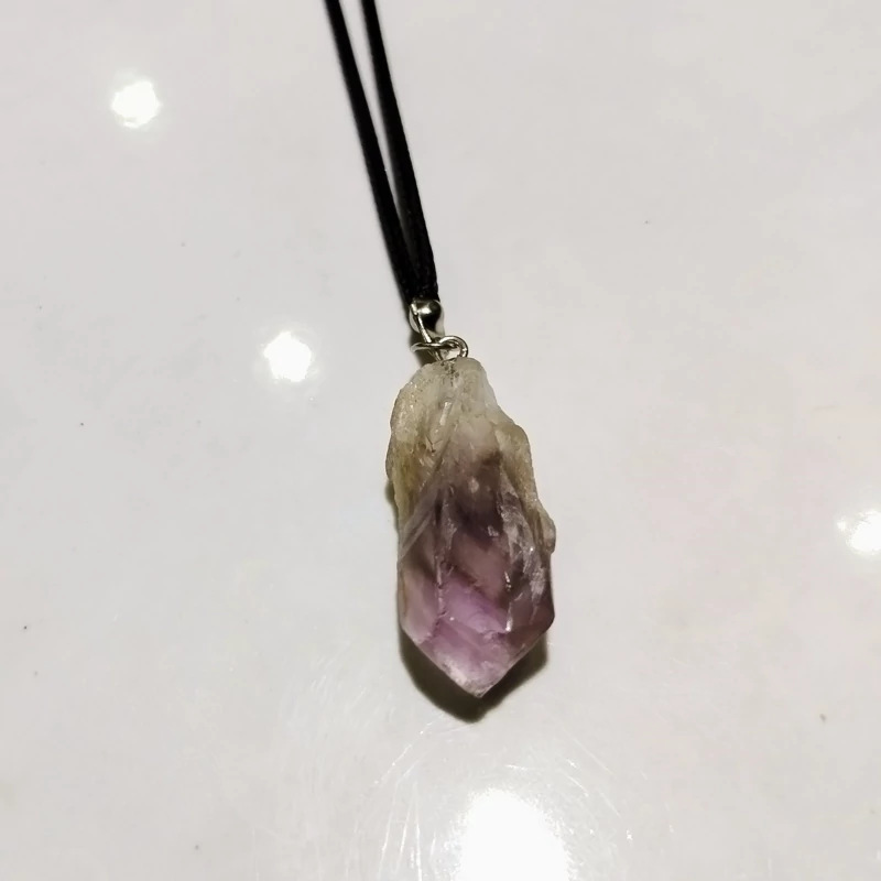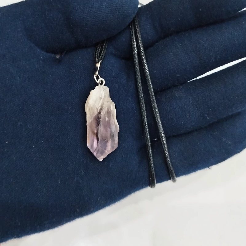 گردنبند آمیتیست برزیلی طبیعی خط دار بهترین کیفیت بلوری چند وجهی،فرکانس عالی ،قیمت مناسب (10گرم)،(a2301)