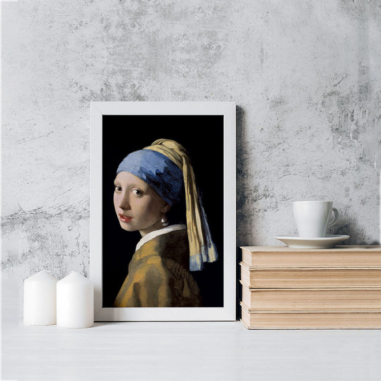 تابلو خندالو مدل نقاشی دختری با گوشواره مروارید اثر یوهاتس ورمیر کد 23347