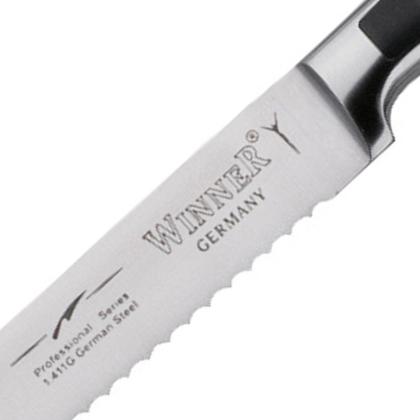 - بسیار تیز و کارآمد -دسته و بدنه یک تکه -ساخت شرکت WINNER آلمان -دارای شناسنامه تیغه کارد به شماره :1.411G -جدیدترین مدل WINNER -مناسب برش نان و گوشت فریز شده و غیره
