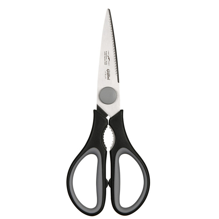 قیچی مخصوص اشپزخانه - خرد کردن مرغ بسیار تیز و برنده -اصل GIFFINI -مناسب برش نان -برای شکستن استخوان مناسب نمیباشد .داخل دسته سیلیکون نرم.دارای گردو شکن وسط دسته قیچی.کیفیت عالی و فوق العاده.دارای بسته بندی عالی
