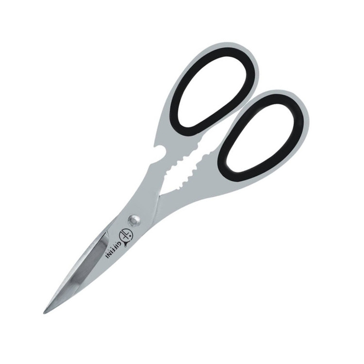 سایر توضیحات-قیچی مخصوص اشپزخانه -دسته و بدنه یک تکه -مخصوص برش نان و سبزی -دارای بطری بازکن -برند GIFFINI -مناسب شکستن استخوان نمیباشد -دارای لاستیک سیلیکون دسته و قابل جدا شدن برای شستشو -استیل براق و ضخیم و عالی
