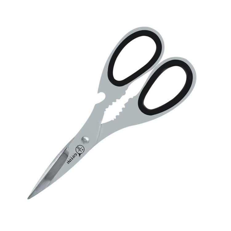 -قیچی مخصوص اشپزخانه -دسته و بدنه یک تکه -مخصوص برش نان و سبزی -دارای بطری بازکن -برند GIFFINI -مناسب شکستن استخوان نمیباشد -دارای لاستیک سیلیکون دسته و قابل جدا شدن برای شستشو -استیل براق و ضخیم و عالی