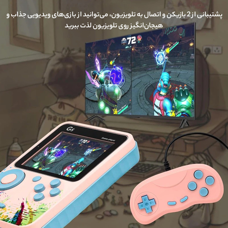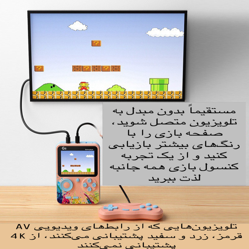 دارای دسته اضافه برای دو بازیکن- دارای باطری پلیمری 1000 میلی آمپر قابل شارژ- دارای کابل MICRO USB- قابلیت وصل شدن به TV