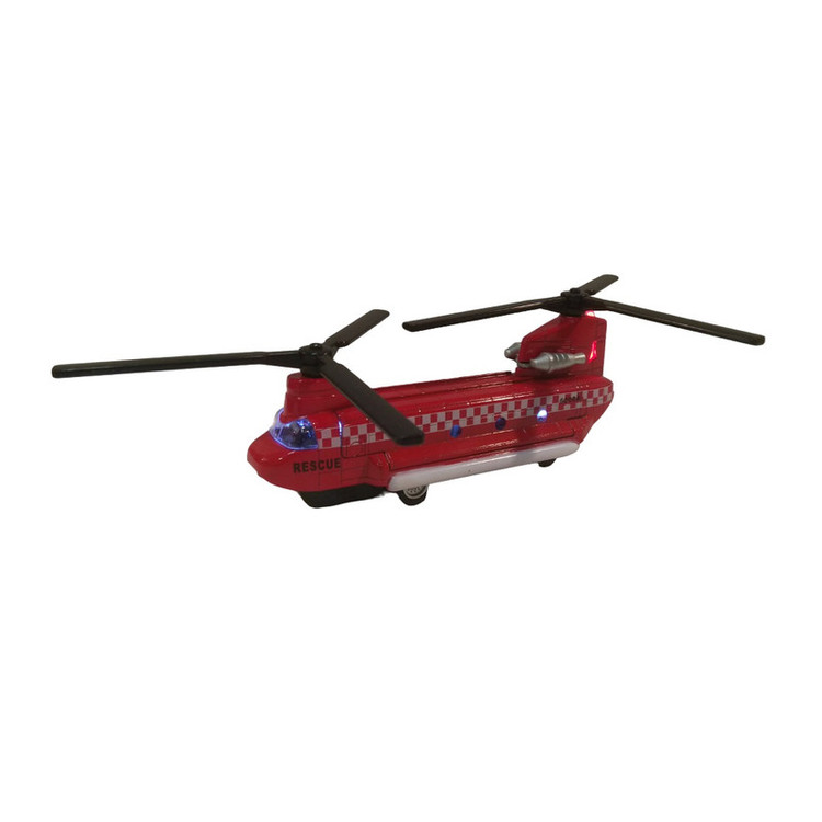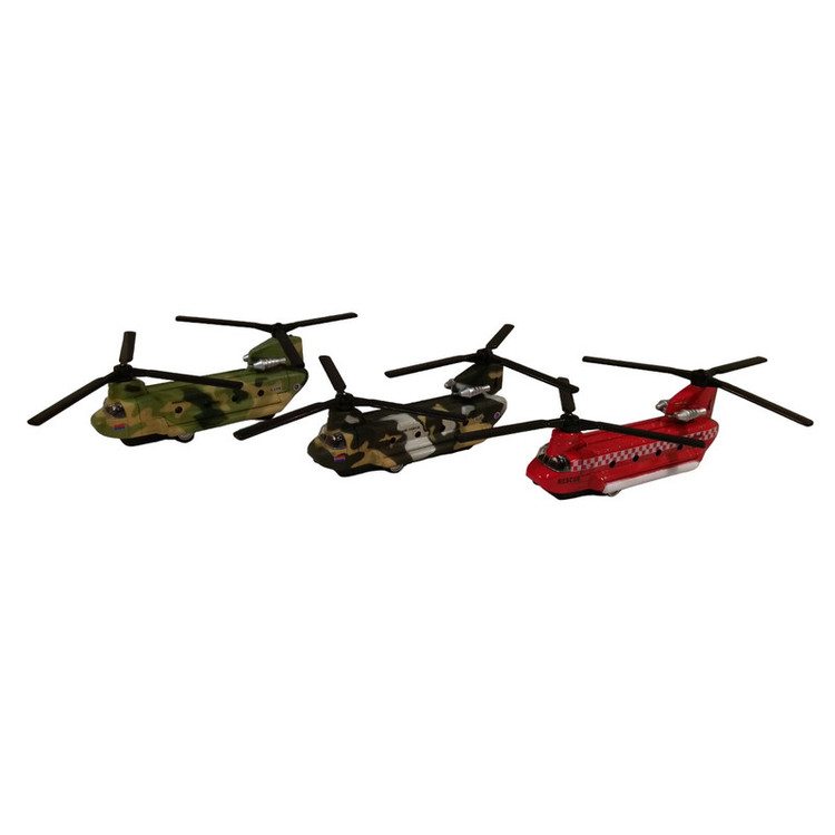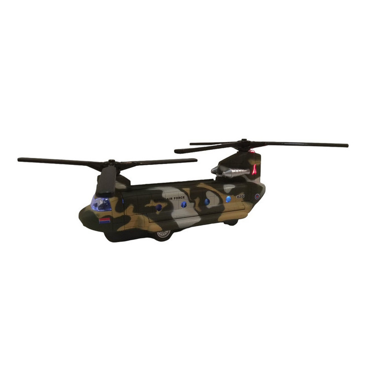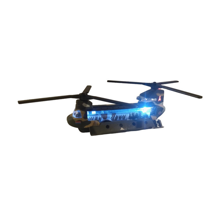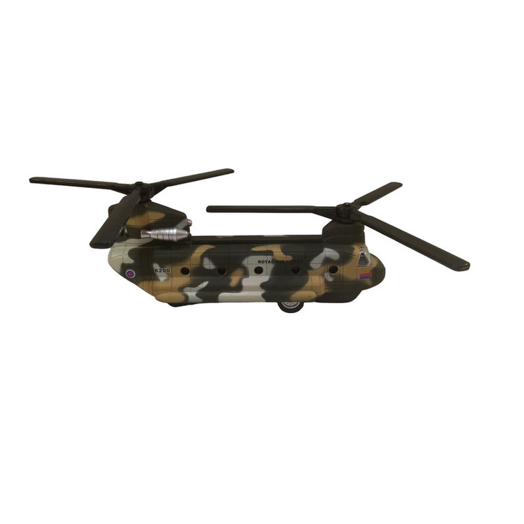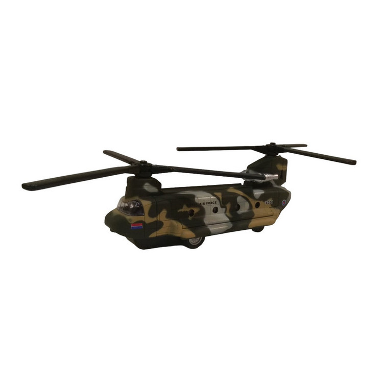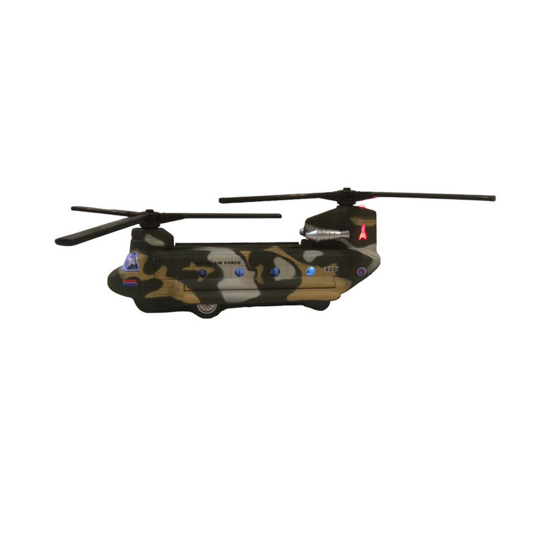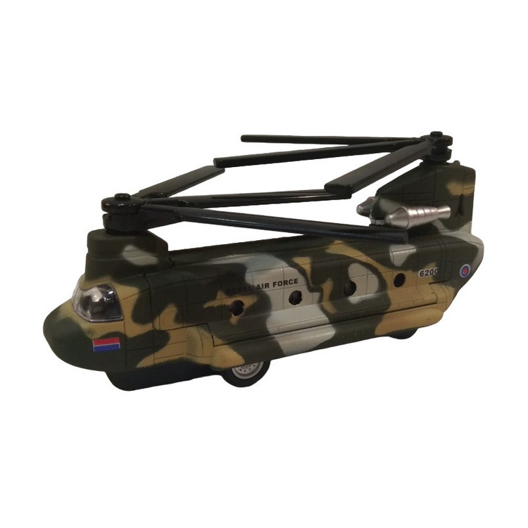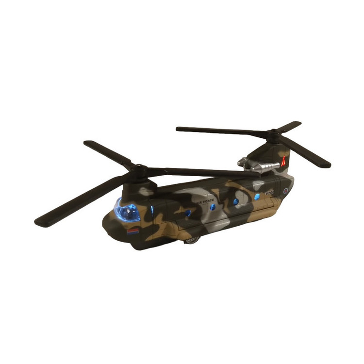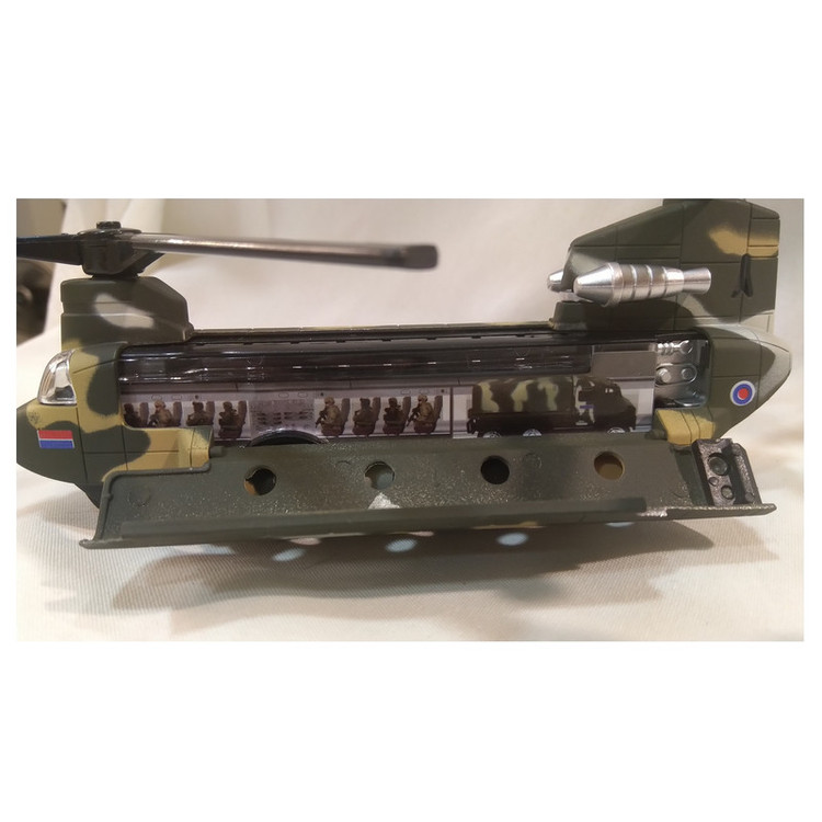 هلیکوپتر شینوک فلزی به طول بدنه 15 سانتیمتر ( بدون در نظر گرفتن ملخها ) که با مقیاس 1:200 از روی نمونه واقعی ساخته شده است . با به عقب کشیدن آن هر دو ملخ همزمان با هم به چرخش در میایند همراه با جلوه نور و صدا