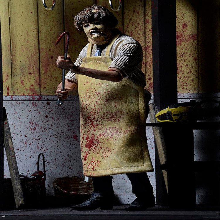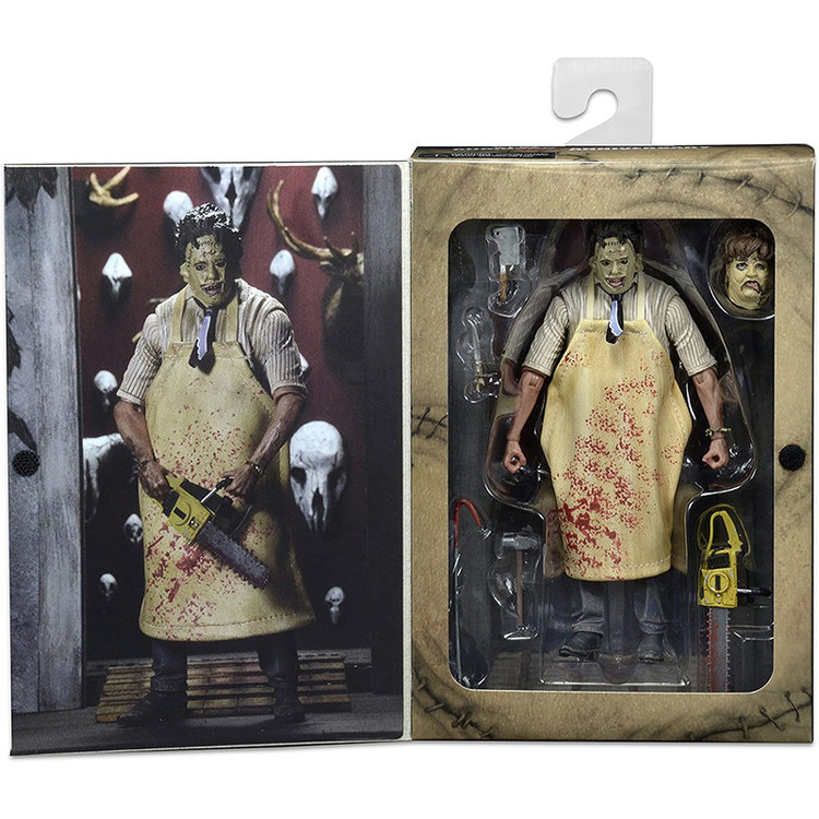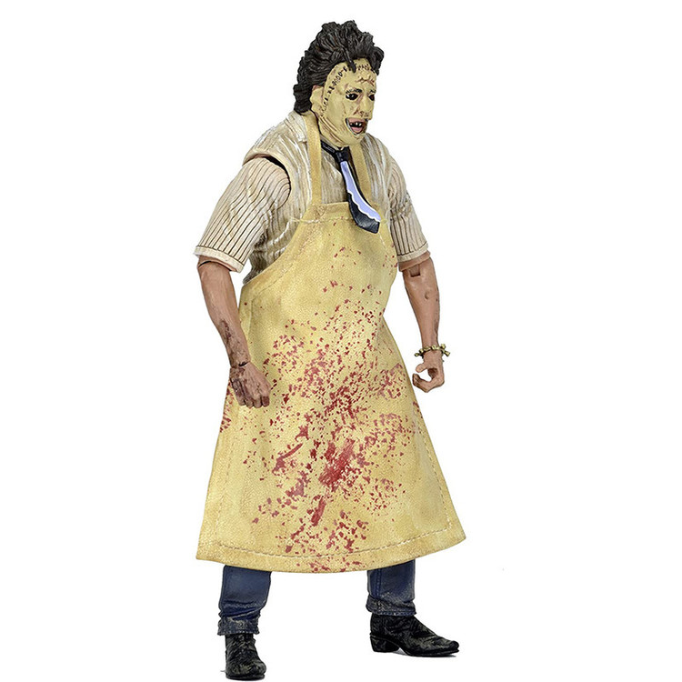 بر اساس فیلم کشتار اره برقی تگزاس محصول 1974 Leatherface قد 7 اینچی با بیش از 25 نقطه مفصلی دارد لوازم جانبی شامل: اره برقی، چاقو، چکش، قلاب گوشت، قیچی و پیش بند وینیل ویژگی ها: 2 سر قابل تعویض جعبه پنجره دوستدار کلکسیونر با دریچه بازشو