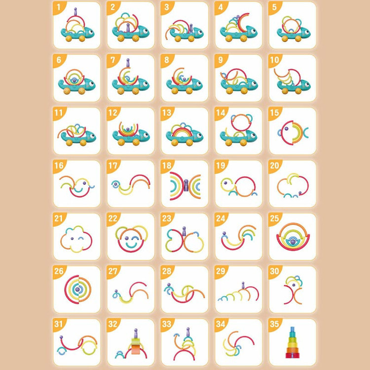 آفتاب پرست پازلی - 6 عدد قوس رنگی در اندازه های مختلف - 1 عدد استوانه رنگی - دفترچه راهنمای پازل