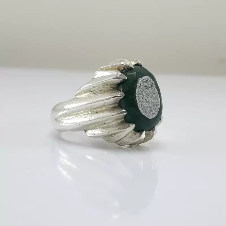 انگشتر نقره قدیمی زمرد هندی معدنی