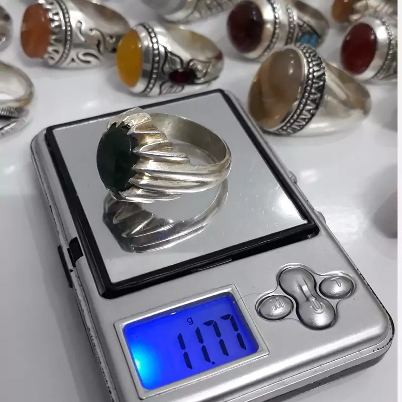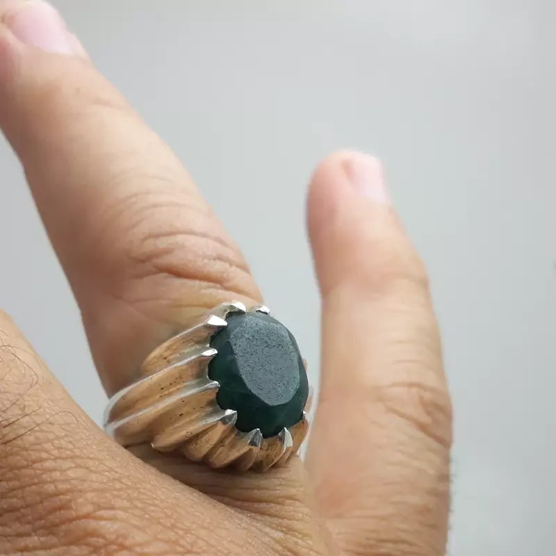 انگشتر نقره قدیمی زمرد هندی معدنی