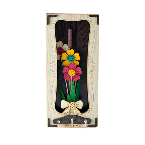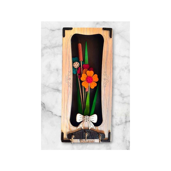 از جنس چوب شامل یک قاب و سه گل داخل آن