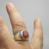 انگشتر نقره دست ساز قدیمی عقیق یمنی معدنی و زیبا