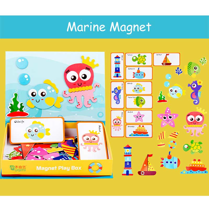 بازی با تخته آموزشی مگنتی یک اسباب بازی سرگرم کننده برای نابغه کوچک شما از سن 3 تا 5 سالگی است تا به تقویت مهارت های آنها کمک کند. این اسباببازی آهنربایی با آهنربایی که در پشت آن هست می تونه به صفحه این باکس مقوایی با طرح دریا، تختههای طراحی مغناطیسی یا حتی یخچال وصل بشه همینطور از بین نمیره یا پاره نمیشه. اندازه مناسب برای دست های کودکان، به طوری که بچه ها به راحتی می تونند اونو نگه دارند.