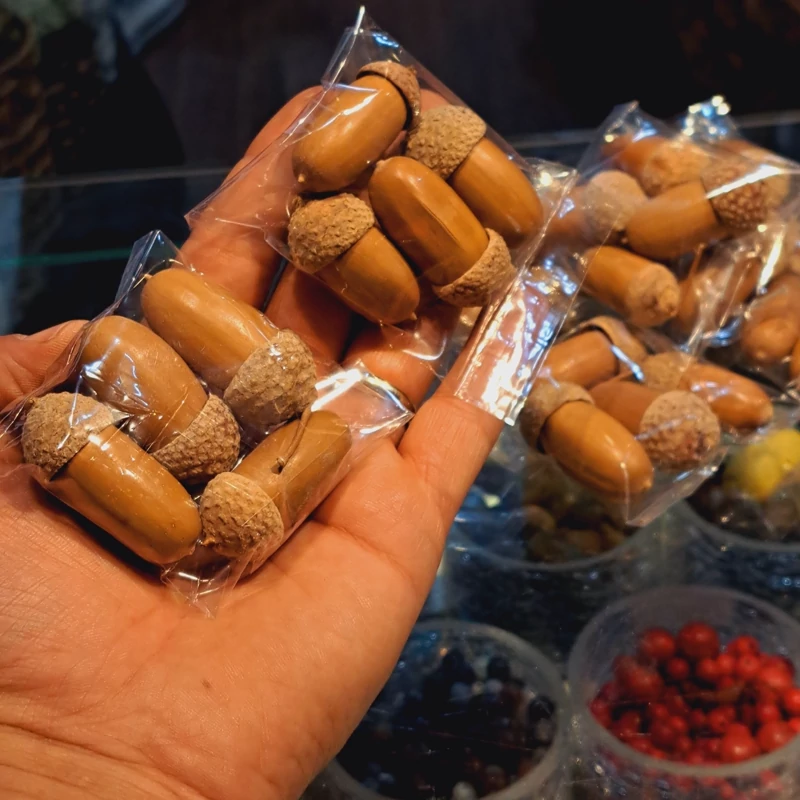 میوه بلوط طبیعی بلوط تزیینی بلوط دکوری بلوط کلاه دار اویز بلوط فندوق دکوری سلماگالری بلوط خوراکی دکور پاییزی مجسمه بلوط
