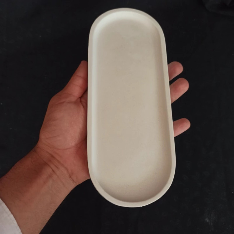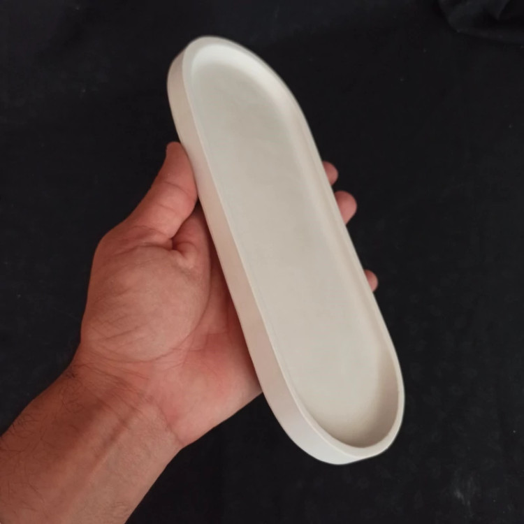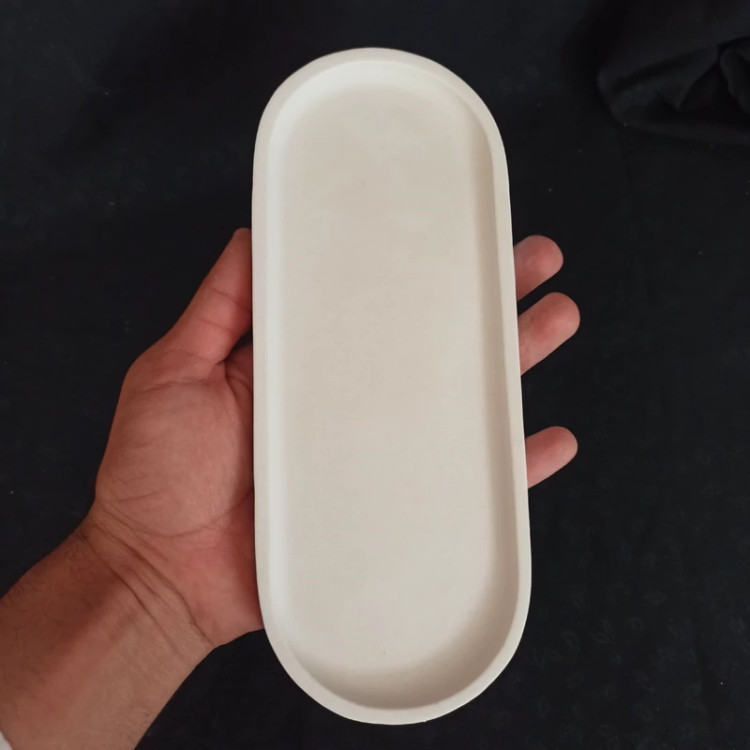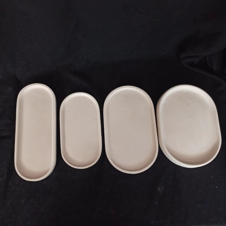 بیس خام سینی بیضی جنس سنگ مصنوعی اندازه 22.7 در 9 سانت ، سینی دکوراتیو ، سینی اکسسوری ، زیرگلدانی سنگی ، سینی بیضی بتنی
