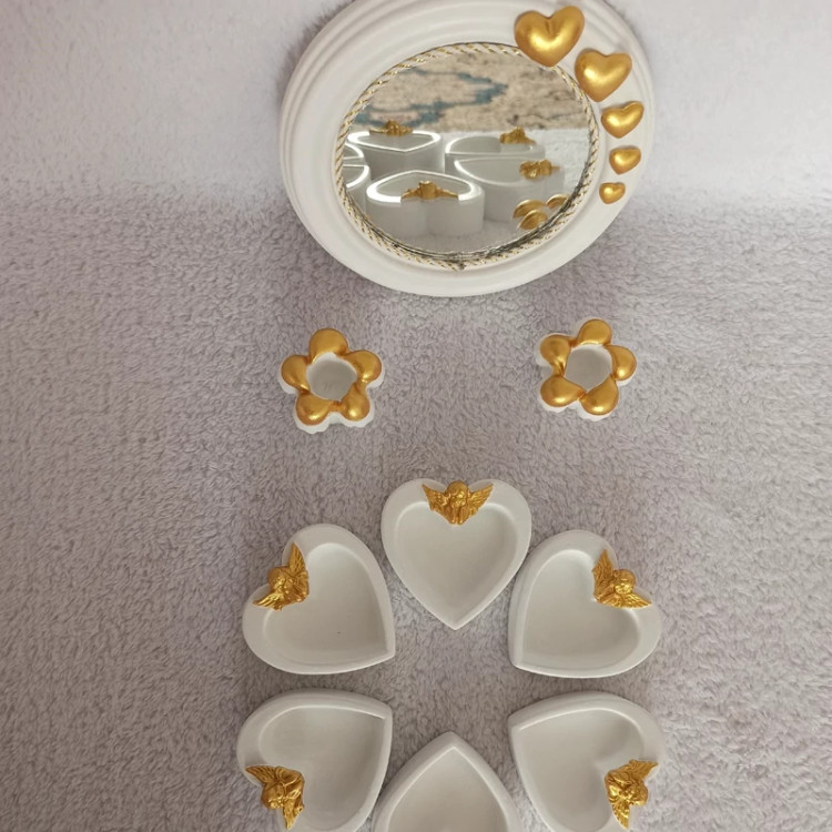 هفت سین قلبی ، سفره هفت سین مدل قلب فرشته ، ست هفتسین قلبی ، هفت سین سفید طلایی